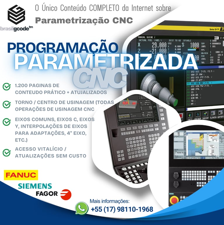 Nota: Todo o conteúdo foi feito em PDF, ou seja: um Conjunto de Apostilas Voltadas a Linguagem Lógica no CNC (programação parametrizada ) com o intuito de reduzir custos e entregar mais conteúdo efetivo.(Nosso conteúdo é o mais aprofundado e acessivel em questão de Custo x Benefício )